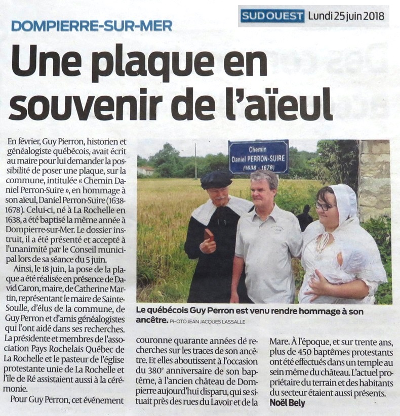 - Dompierre-sur-Mer: Une plaque en souvenir de l'aieul (25 avril 2019)