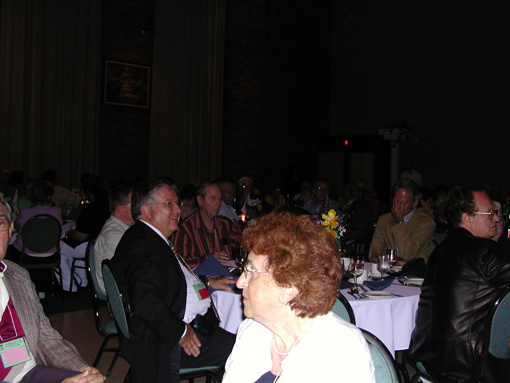 Les Pères Toussaint et Raymond Perron procédèrent à la bénédiction du repas. La conversation des convives fut entrecoupée ici et là par la présentation d’hommages aux jubilaires ainsi qu’à René (35) et Dorothy (348) en reconnaissance non seulement de leur 64ième anniversaire de mariage mais aussi de leur fidélité envers l’Association. En effet, ce couple charmant a été présent à chacun des rassemblements de notre Association en plus de l’assemblée de fondation en 1991. Bravo! Une dizaine de prix de présence, généreusement offerts par des commanditaires Perron de Valleyfield, furent aussi tirés au sort. Il est à noter que c’est Mme Claire Perron (207) qui a gagné les armoiries de l’Association sculptées sur bois par Jean-Claude Perron (547) d’Isle-aux-Coudres. Très mérité surtout que Claire a beaucoup aidé au succès de ce rassemblement.