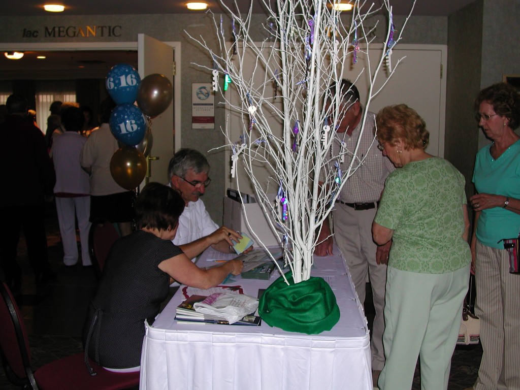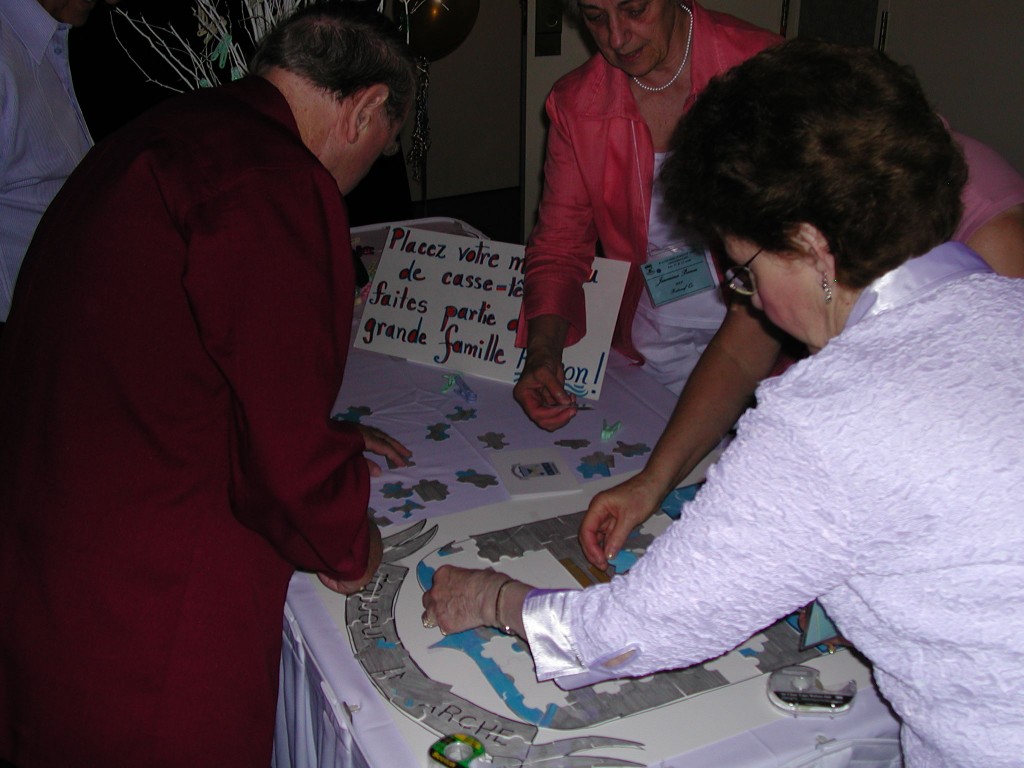 Friends picked their tables, happy to have more time to fraternize. More door prizes were offered and among the winners was Suzanne who will head the Beauce gathering next year. All, Perrons and friends, said their farewells, very satisfied with this gathering that was made more enjoyable by the various games linked to the KEY, by the puzzle representing our Coat of arms, and made it a date to meet in Saint- Georges in 2008.
