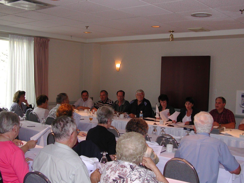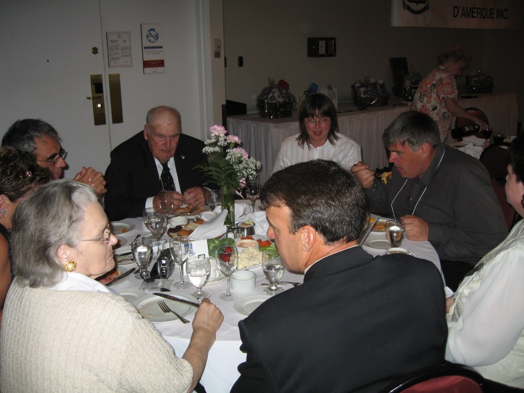 There were loads of door prizes and the Perrons looked happy. Jean-Claude’s sculpture of our coat of arms and Sylvain’s painting went to Yolande Perron- Cournoyer (111) and Thérèse Marie Perron (150) respectively. The evening went on filled with songs and dancing but not overly late because by 9 o’clock the following morning, all members had to attend the general meeting.