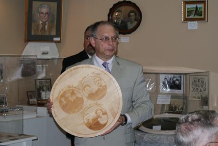 Le Livre d’or de la municipalité demeure ouvert sur une table non loin du poste d’accueil et les participants sont invités à aller le signer. Le repas terminé, il est temps de récompenser les congressistes de leur participation en faisant tirer de nombreux prix de présence de même que la belle sculpture de nos armoiries. Depuis de nombreuses années déjà, Jean-Claude, artiste de l’Isle-aux-Coudres, se fait un devoir et une joie de sculpter nos armoiries qu’il offre généreusement à l’Association. Cette année, l’heureux gagnant est M. Gérard Pleau de Portneuf, époux de notre membre Lise Perron (587), tous deux des assidus à nos retrouvailles. Cette année encore, nous avons le grand plaisir de compter parmi nos membres participants, M. René Péron (35) et sa dame Dorothy (348) qui ont assisté à chacun de nos 19 rassemblements.