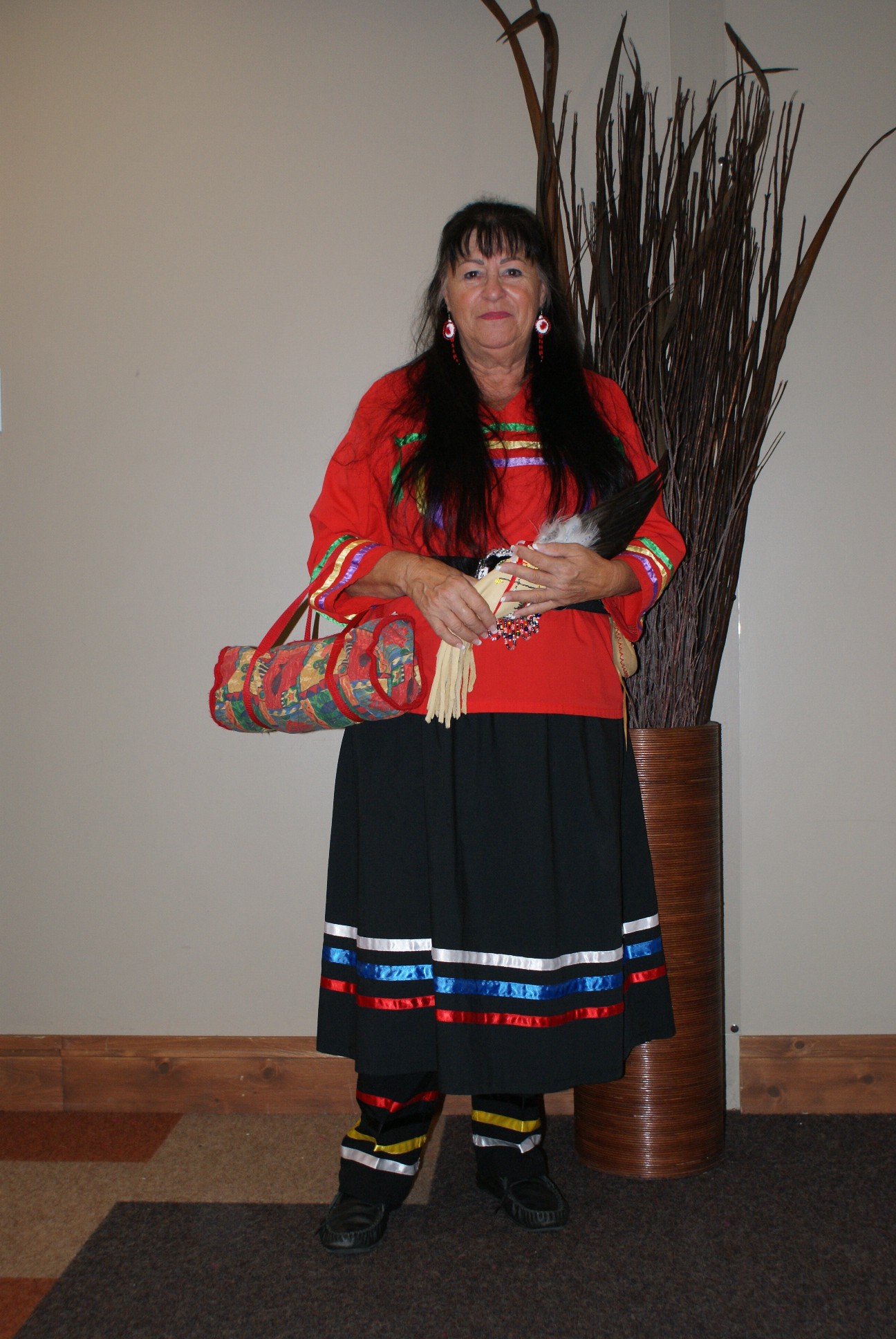Avant le début du spectacle, Andicha demande à ‘madame Perron’ de venir la retrouver en avant. Laquelle? répond Cécile en s’avançant; la salle étant remplie de dames Perron. Puis, Andicha appelle monsieur Fernand. Elle nous remet chacun une plume spirituelle. C’est alors que je me rappelle ses mots quand nous étions venus la rencontrer cinq mois auparavant: ‘Vous nous donnez quelque chose et je vous donne quelque chose. J’aurai une plume pour vous’. Tiawenhk! lui dit Cécile tandis que Fernand lui fait une bonne bise sur la joue.