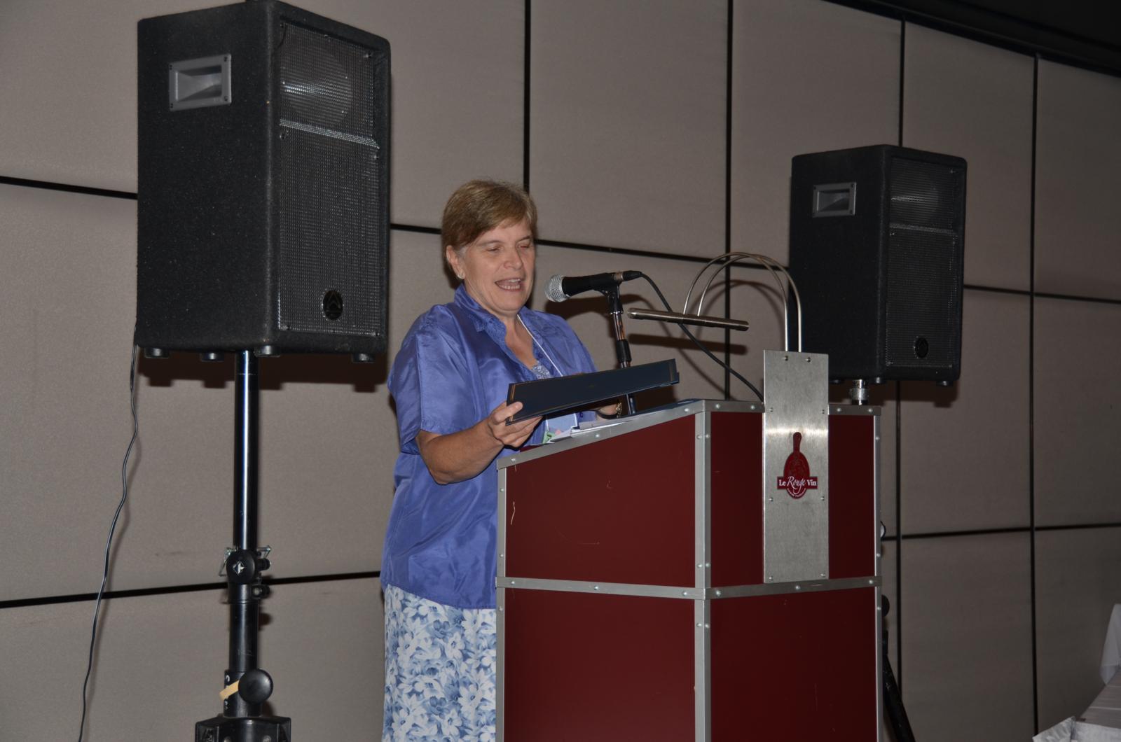 Au cours du souper, la présidente souligne les anniversaires de mariage de + 50 ans des membres présents. Un couple de jubilaires, madame Bernadette Perron (961) et son époux André Guérin, reçoivent les hommages de l’Association. Puis, surprise, Diane (416) la sœur de Gabrielle s’avance avec une gerbe de fleurs pour … Gabrielle qui célèbrera bientôt son 59e anniversaire de naissance. Tous, en chœur, nous lui entonnons le chant de bonne fête ainsi qu’à Yvon (81) dont c’est l’anniversaire le lendemain. Gabrielle reprend le microphone et lit le texte d’un certificat rendant Rhéal (492) Membre honoraire en reconnaissance de son engagement au sein de l’AFPA.