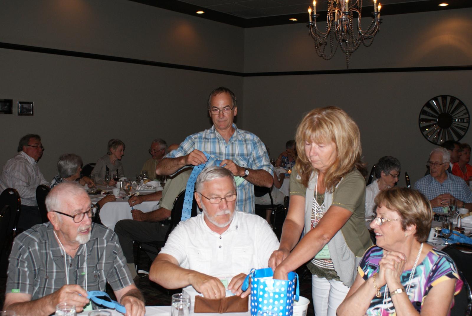 À tour de rôle, dès qu’ils entendent la forte voix de Jean-Yves appeler le numéro de leur table, les gens vont se servir au buffet chaud/froid; le veau braisé est particulièrement exquis. Pendant le repas qui est la dernière occasion de jaser, Gilles fait tirer trois prix de présence; Manon de Val d’Or gagne le deuxième prix offert par Tourisme Trois-Rivières, Linda de Cookshire, sac et articles promotionnels de l’AFPA, et à Bertha de Coaticook est remis un renouvellement d’adhésion à l’Association. Un dernier mot de la part du coordonnateur puis le nouveau président clôt ces retrouvailles par quelques mots de remerciements. Tous sur leur départ se disent: ‘Au revoir à Dégelis!’
