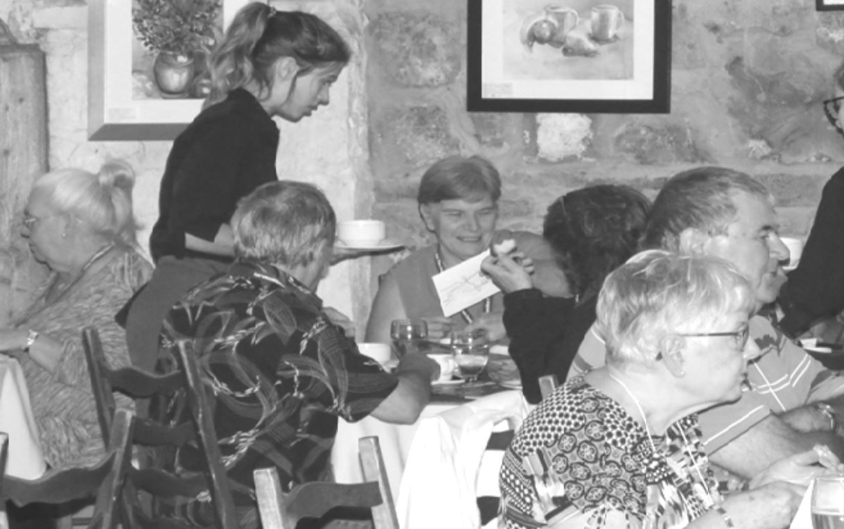 En arrière plan, on voit David et Richard (755); Gérard écoute les sœurs Micheline (393) et Jeannine (293) qui sont en pleine discussion et Denise parle à Pierre.